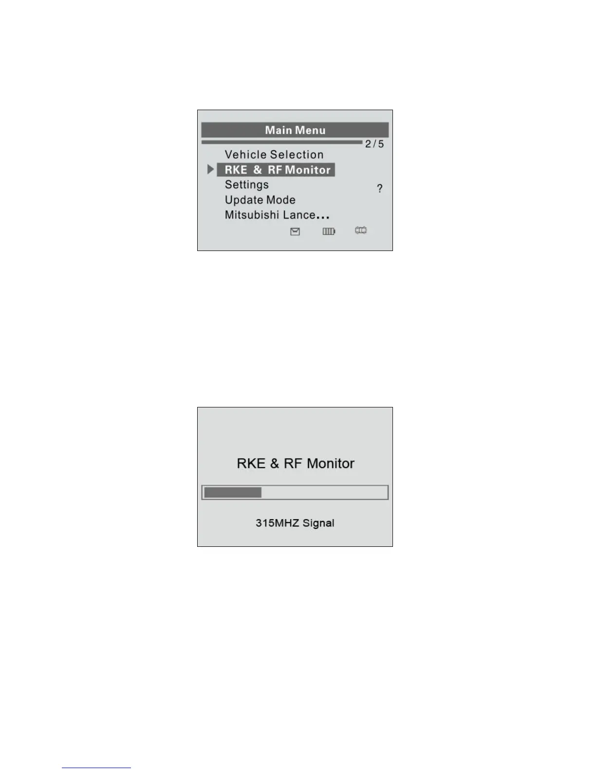1) Use the UP/DOWN SCROLL button to select RKE & RF