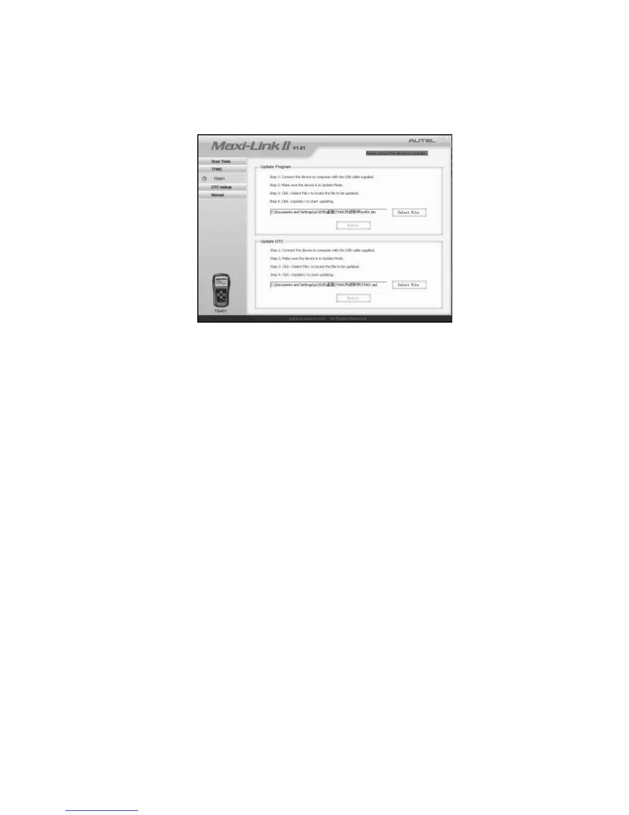 5) Click Select File button to locate the latest update file you have