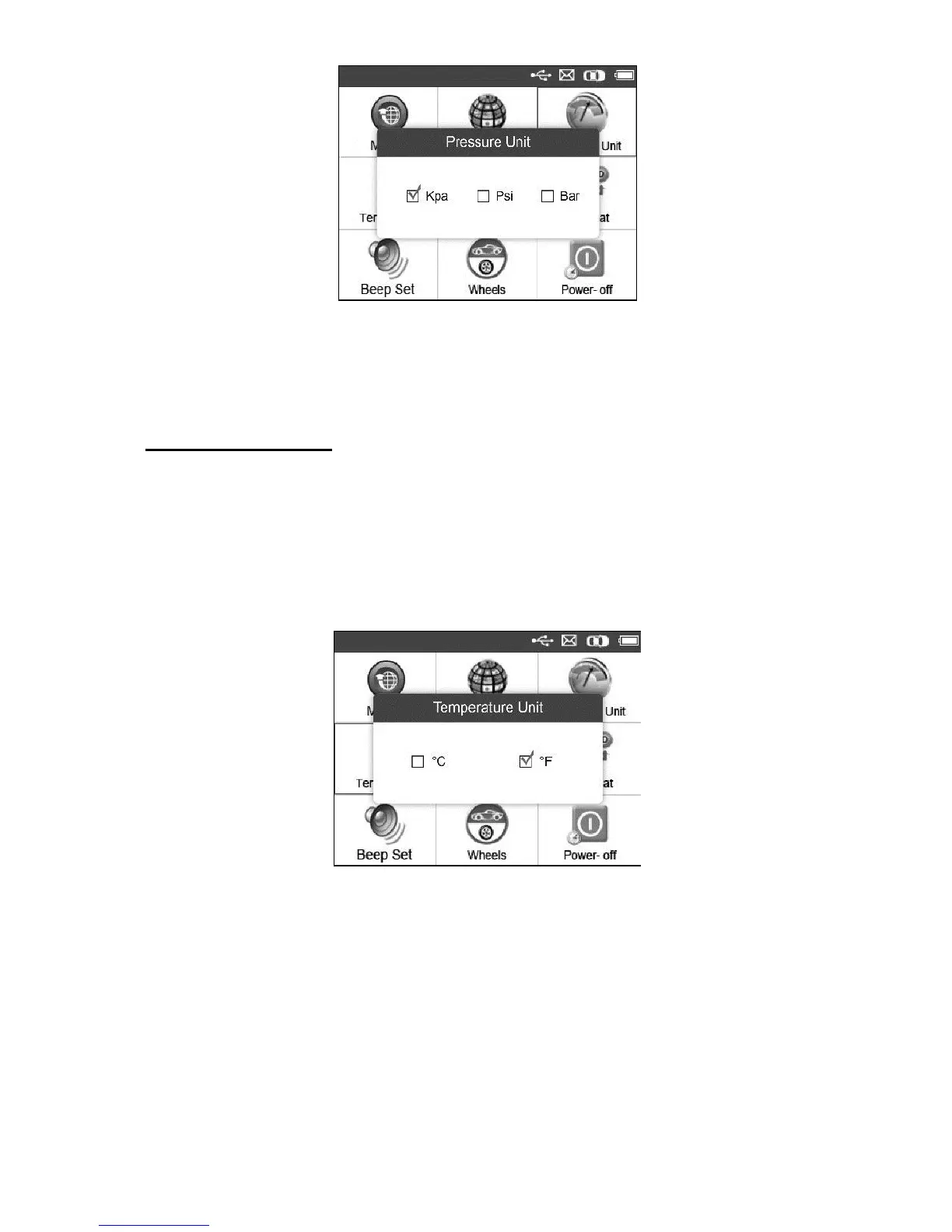 2) From Temperature Unit screen, use the LEFT/RIGHT scroll