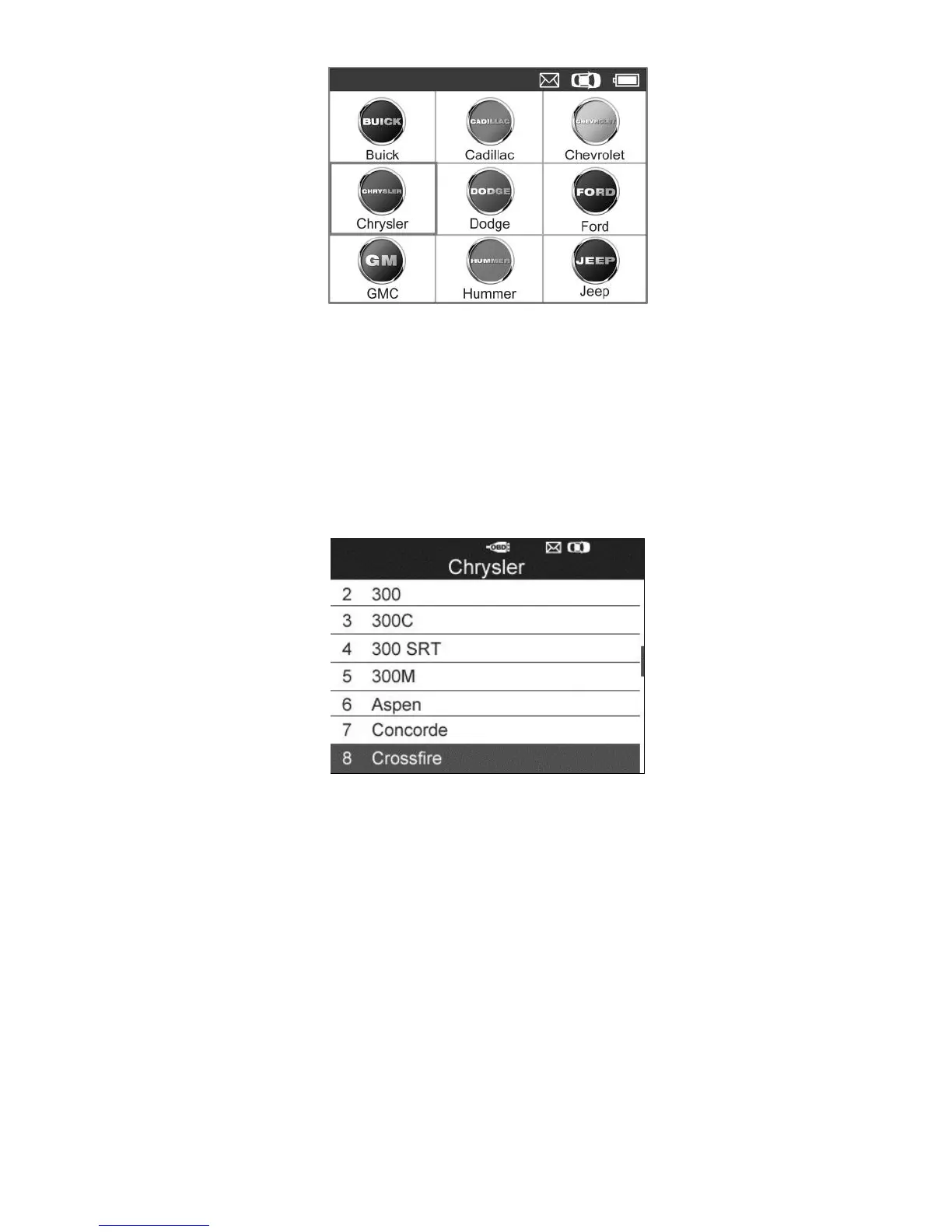 3) Observe the menu title and use UP/DOWN scroll button to select
