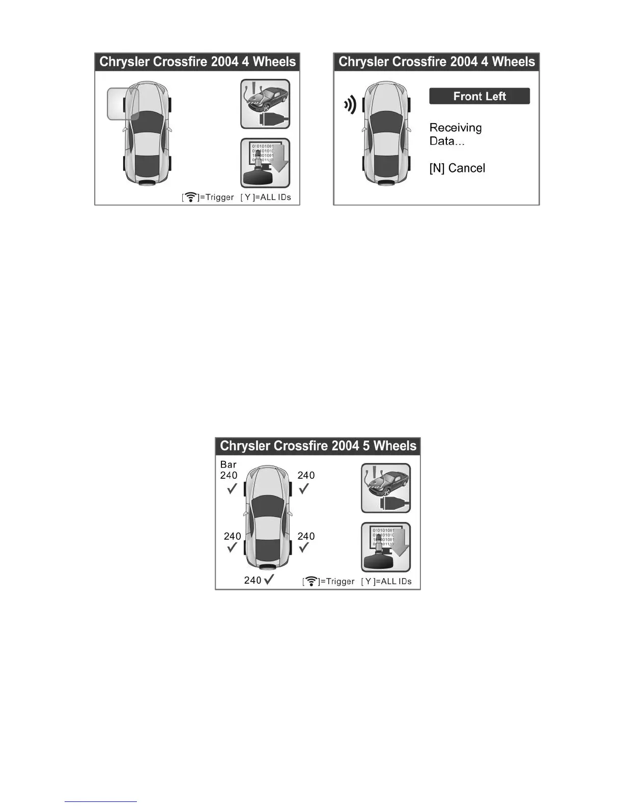 The tool will do TPMS test in a sequence of FL (Front Left), FR