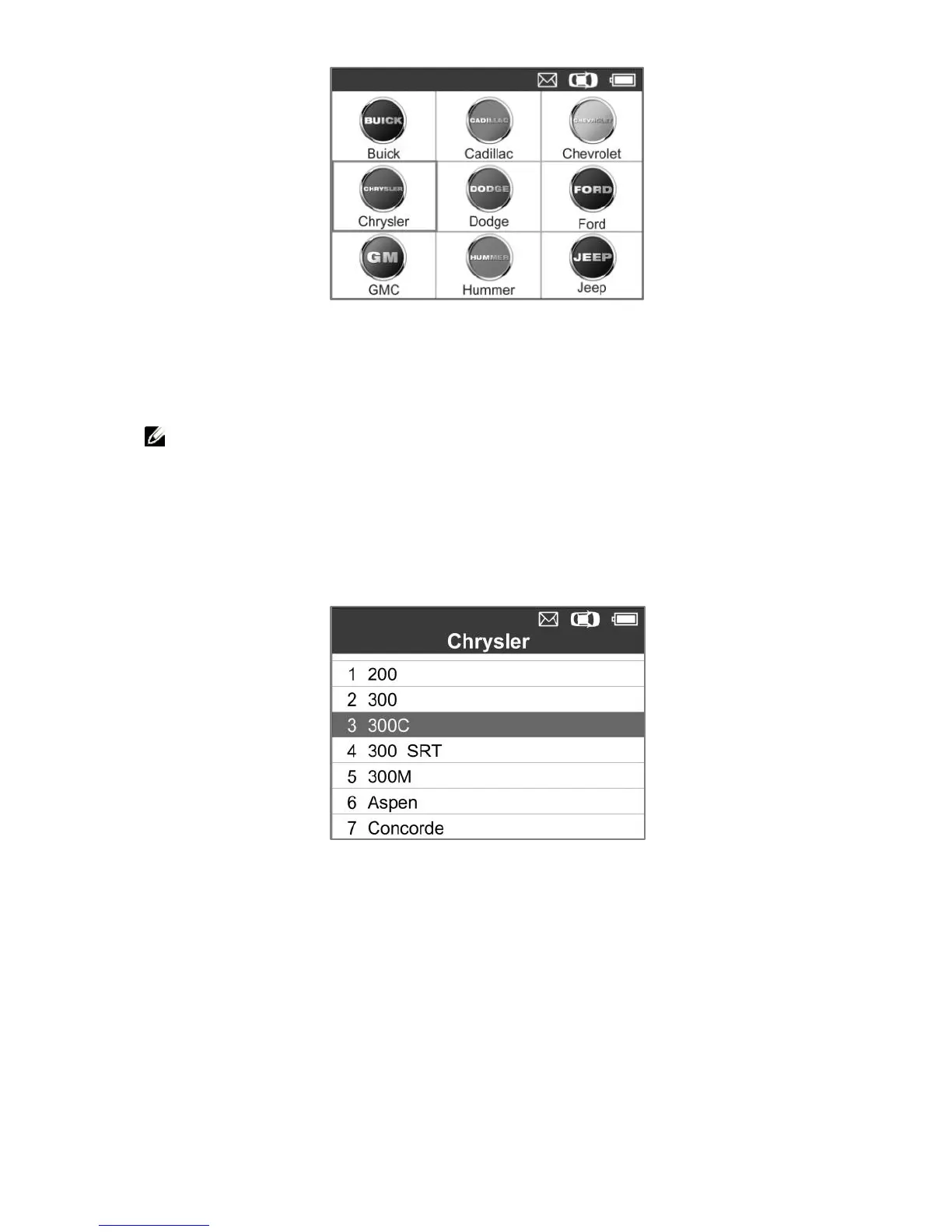 select by model and year to identify the vehicle being tested.