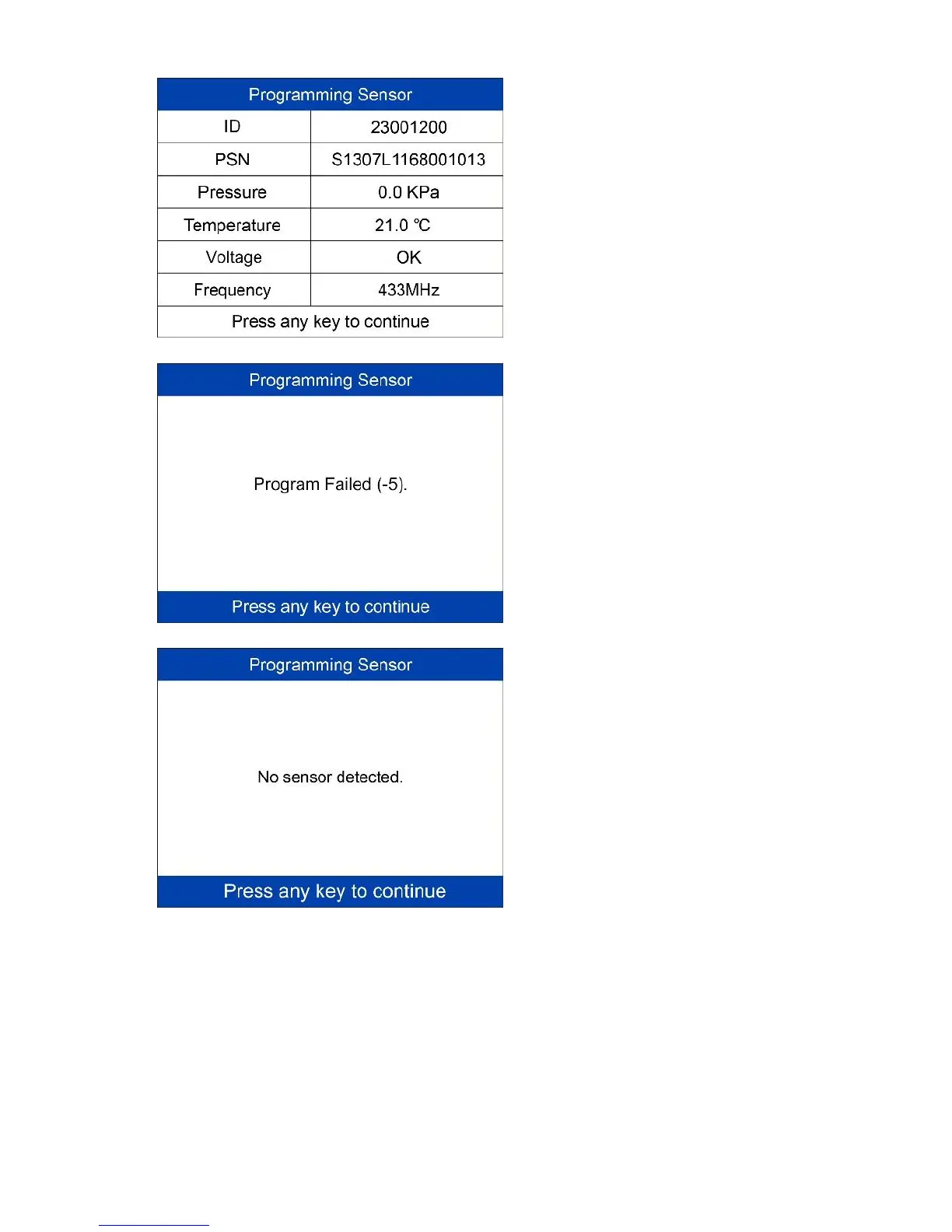 sensor fails to program. Press