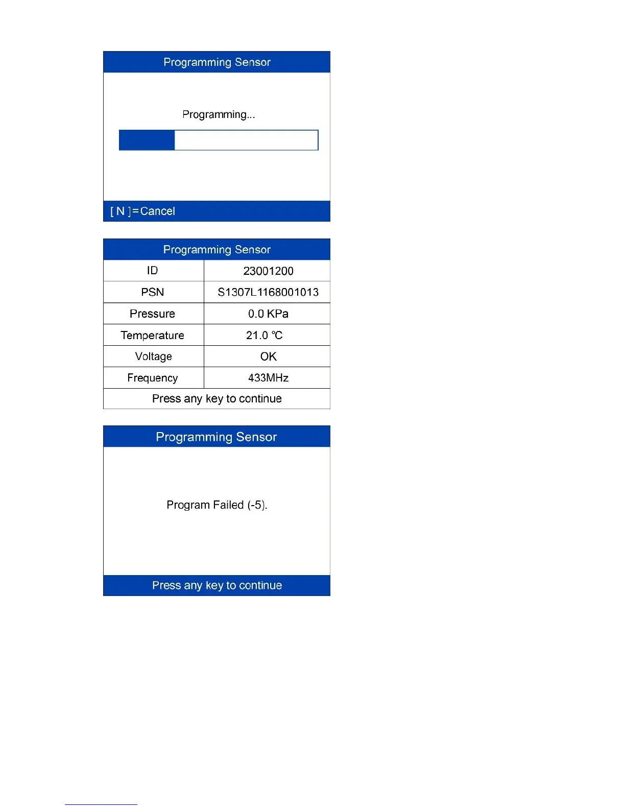 Sensor ID, PSN, Pressure,