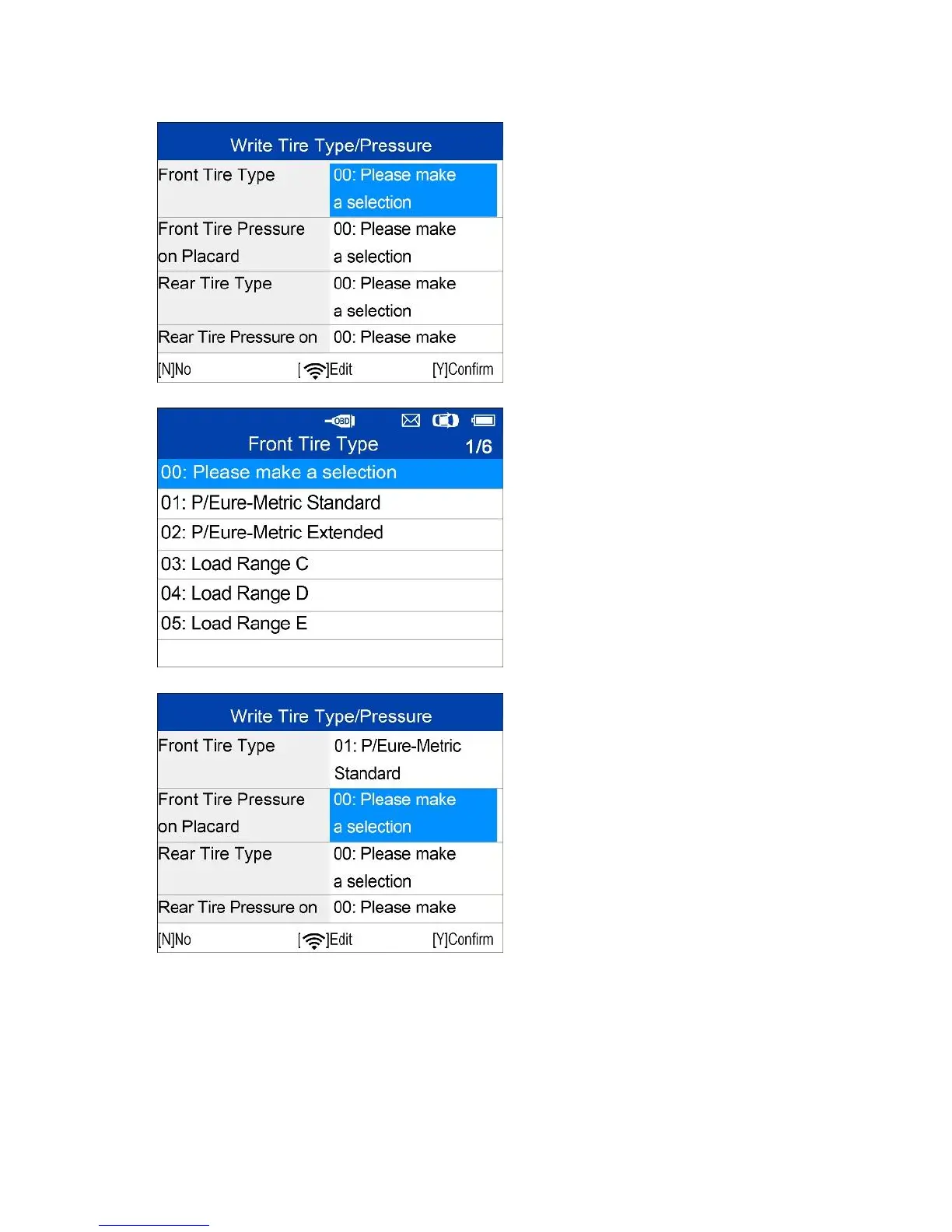 Write Tire Type/Pressure