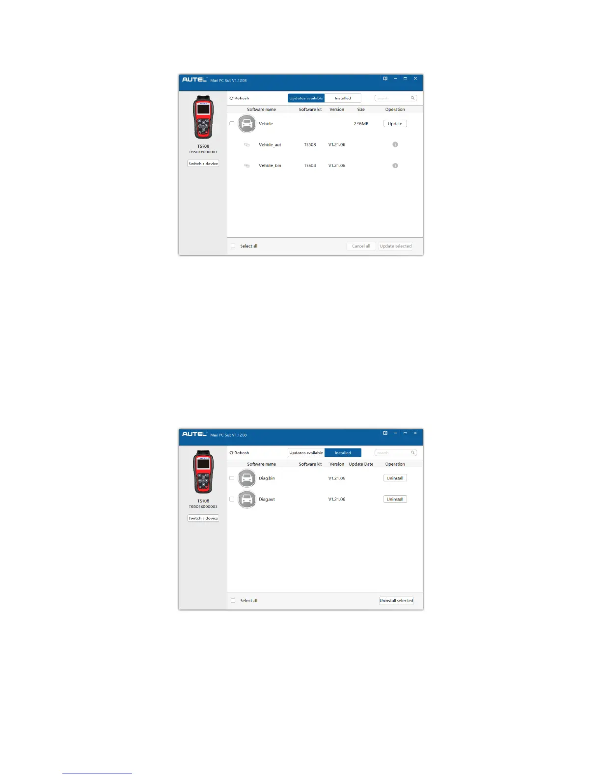 6. In the Update Available window, select the appropriate files to install.