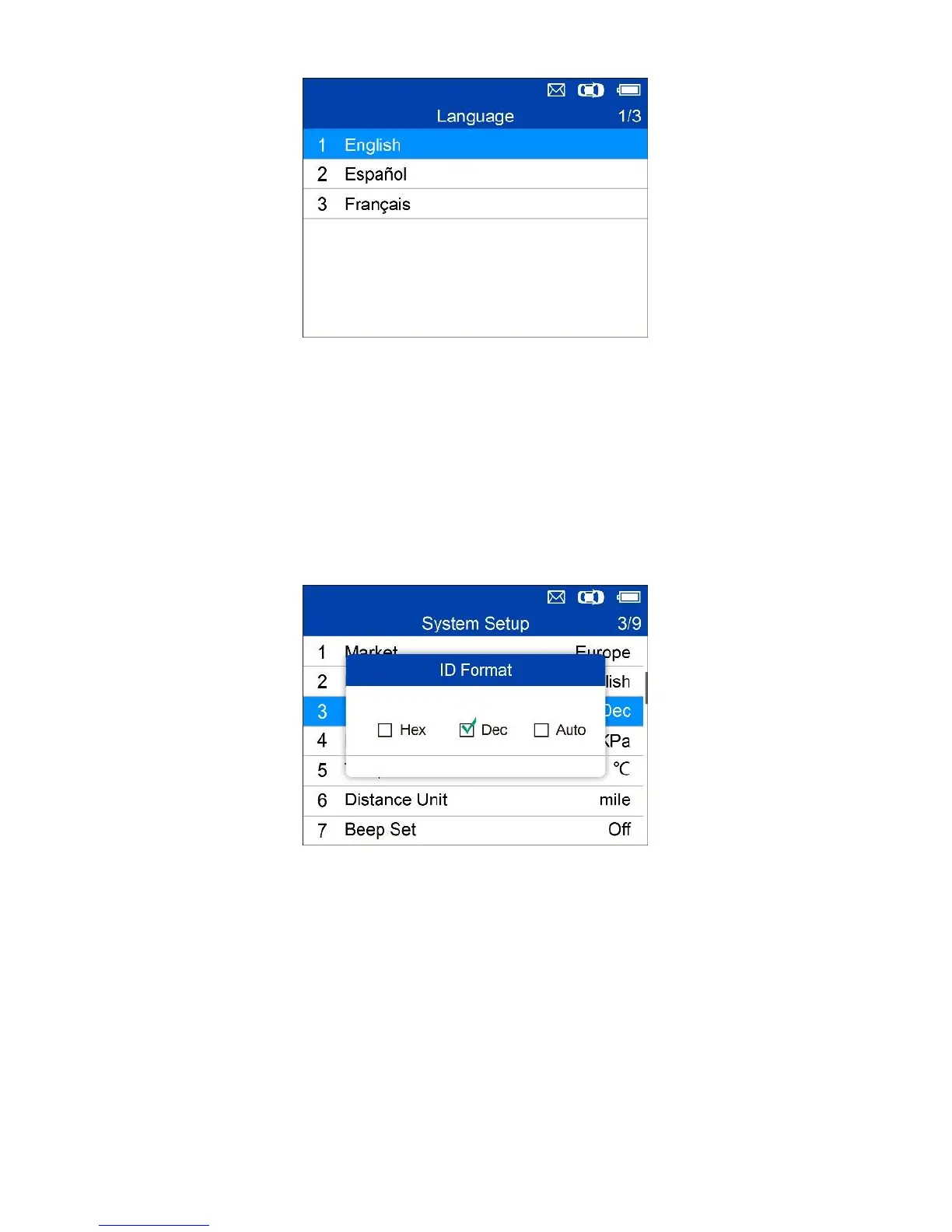 2. From ID Format screen, use the LEFT/RIGHT scroll button to select the