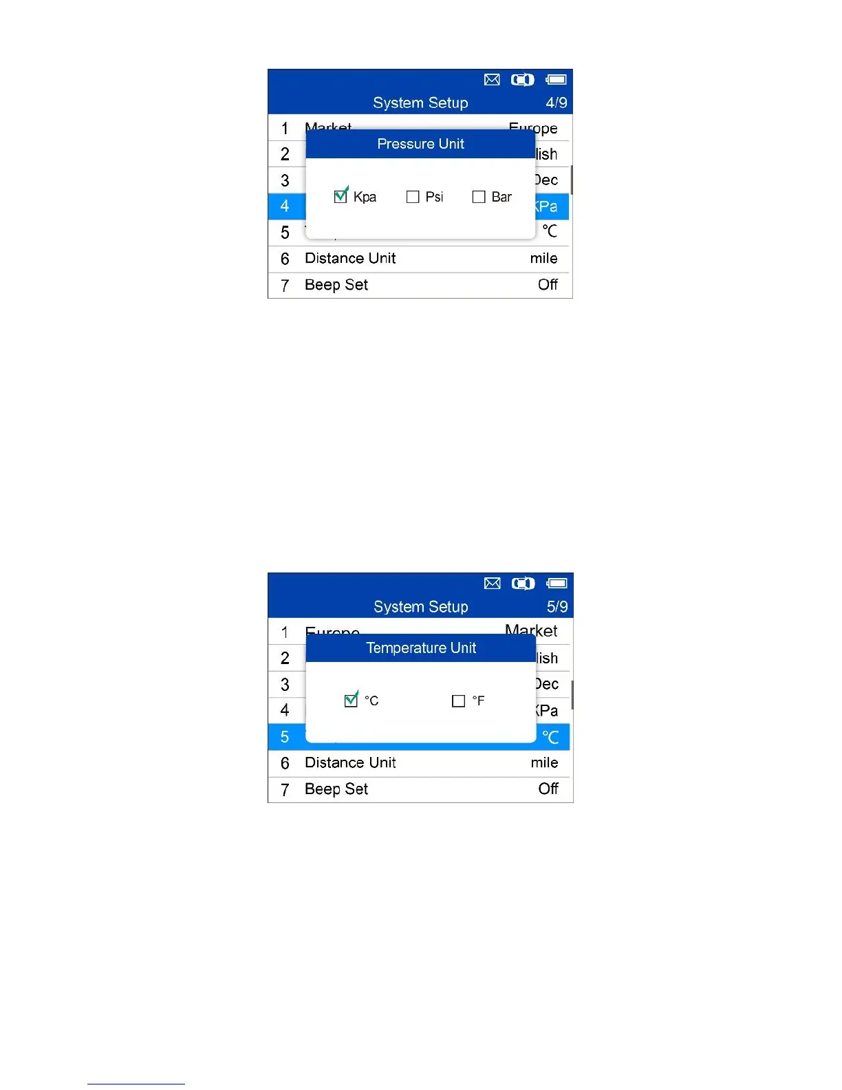 2. From Temperature Unit screen, use the LEFT/RIGHT scroll button to