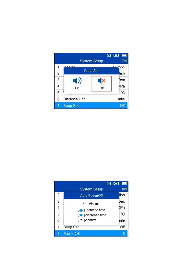 2. From Beep Set menu, use the LEFT/RIGHT scroll button to select ON