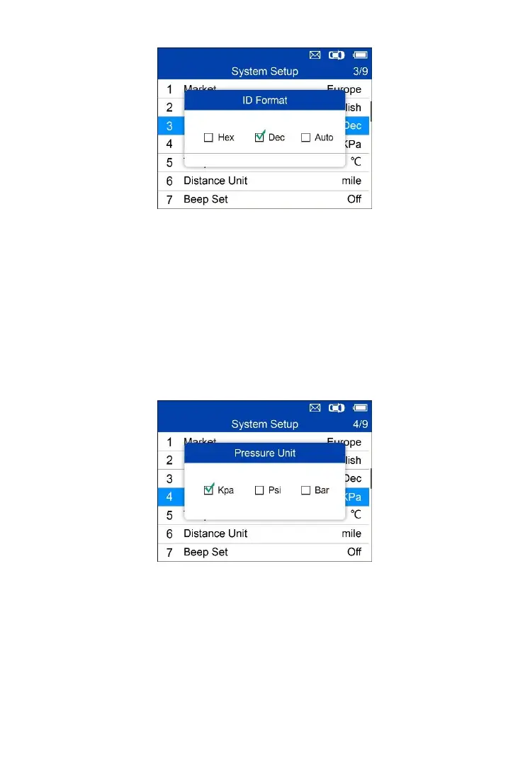 2. From Pressure Unit screen, use the LEFT/RIGHT scroll button to select