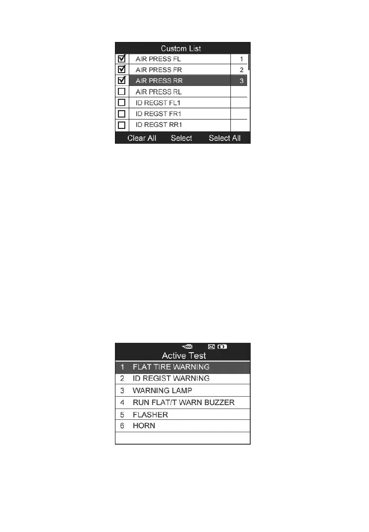1) From the TPMS Diagnosis Menu, use the UP/DOWN scroll button to