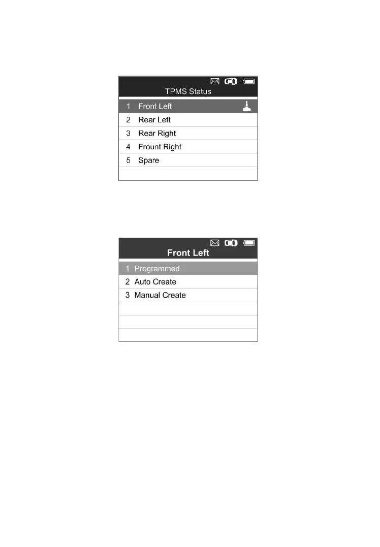 wheel sensor. Select “Programmed” to reprogram the wheel sensor
