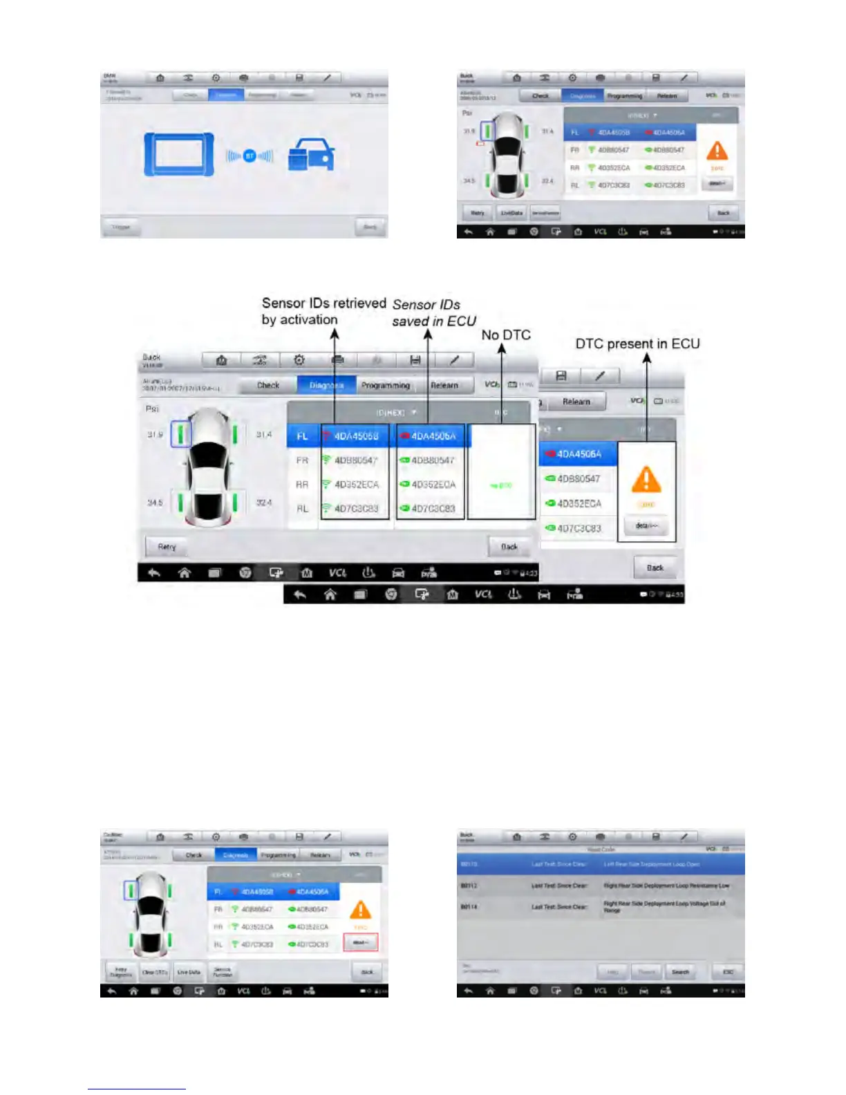 2. If DTCs are detected from the TPMS ECU, a yellow hazard icon displays in the