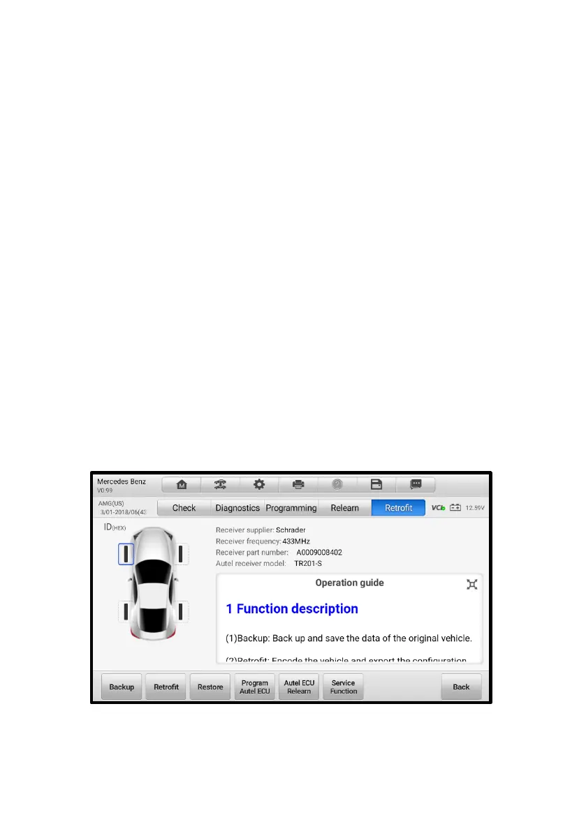 choose the procedure, including the Back-up, Retrofit, Restore, Program Autel