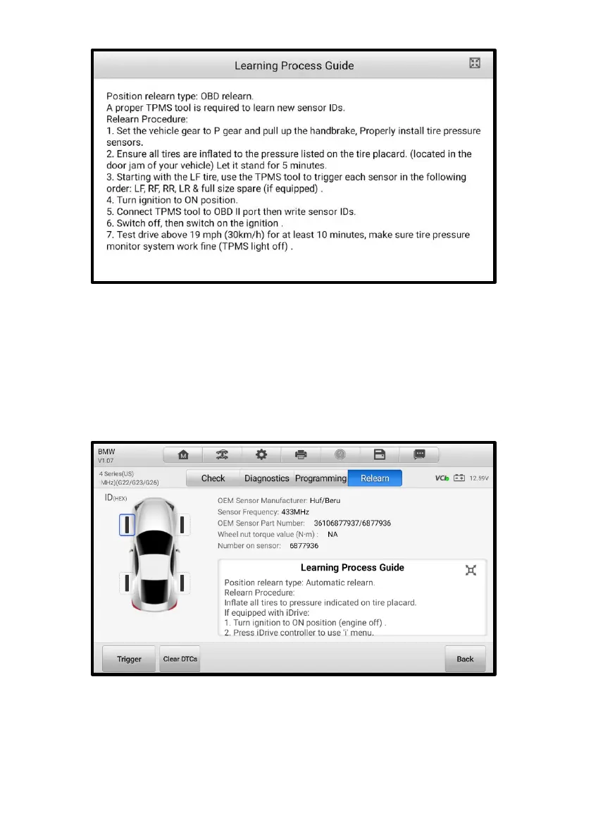 vehicle models, you need to follow the on-screen Learning Process Guide to let the