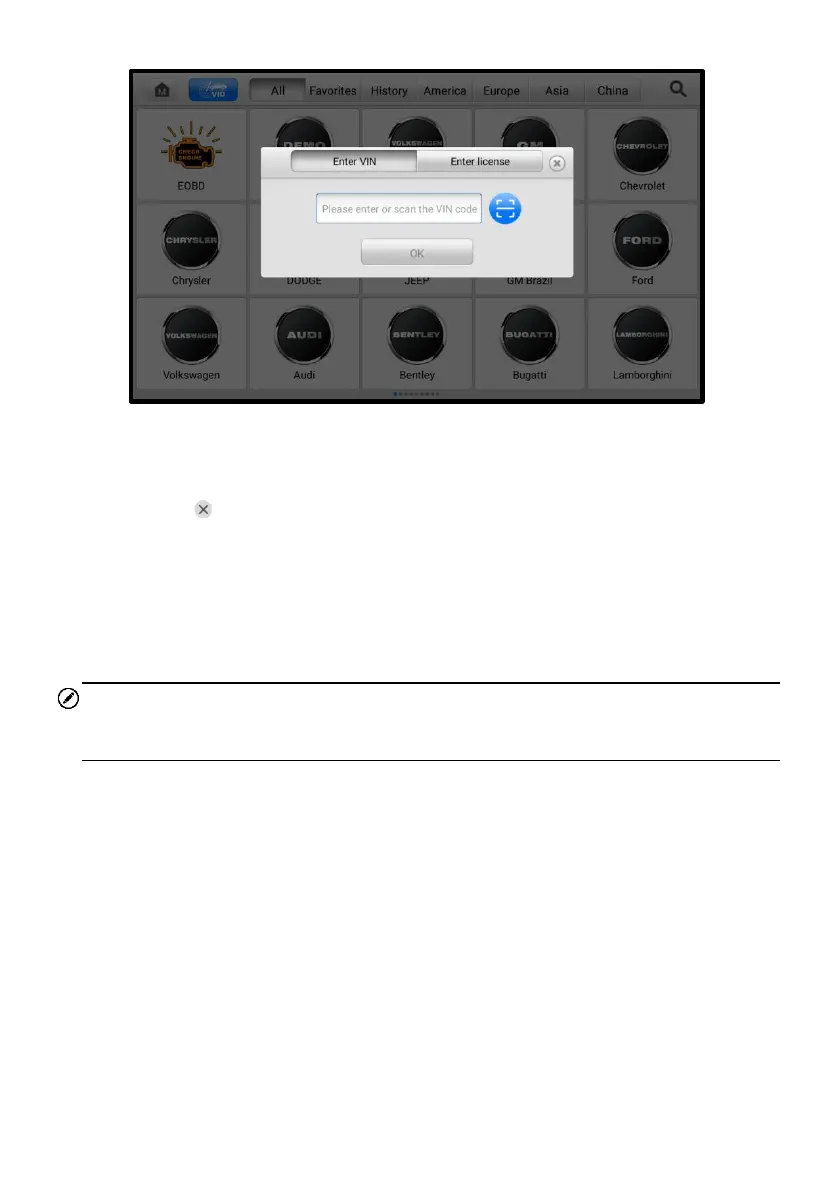 bottom, three options are available: Scan QR Code/Barcode, Scan VIN, and