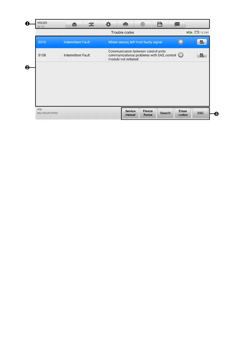 ⚫ Column 4 — tap to display additional information about the retrieved fault