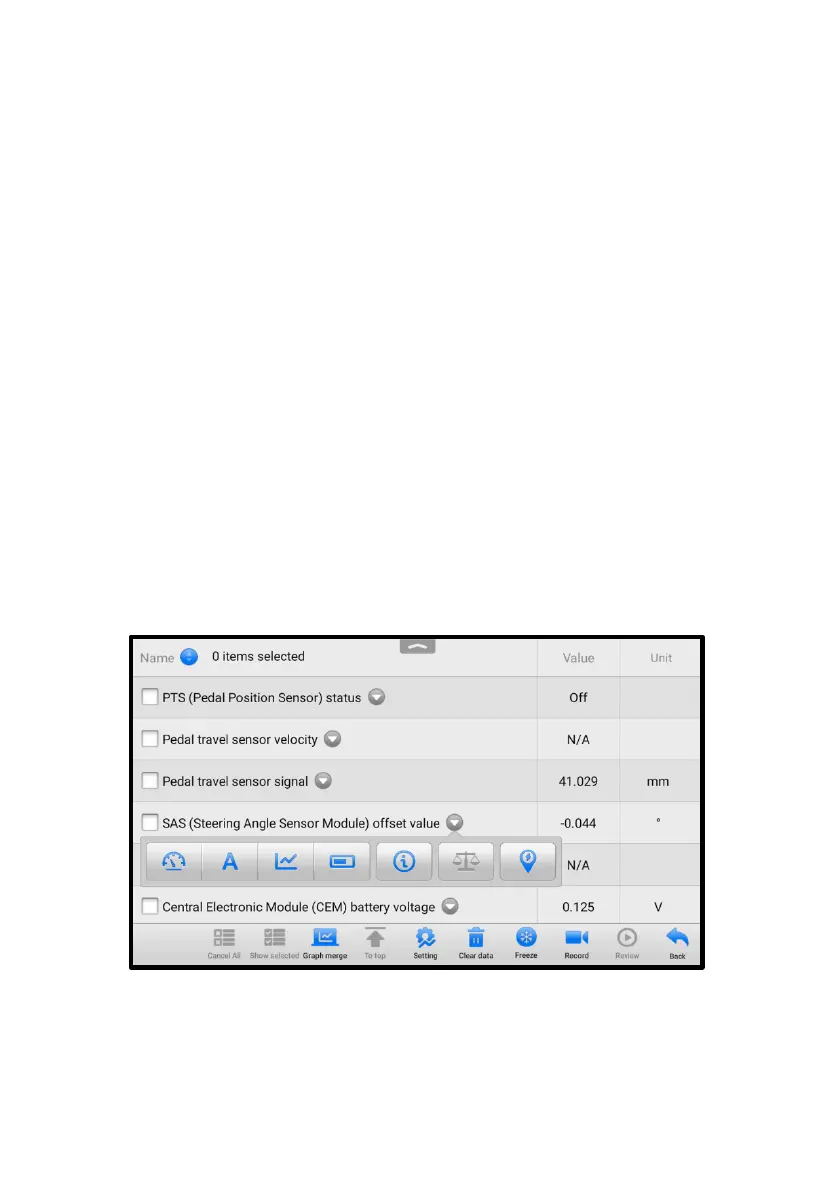 ⚫ Unit Column — displays the unit for the parameters (Tap the Settings button