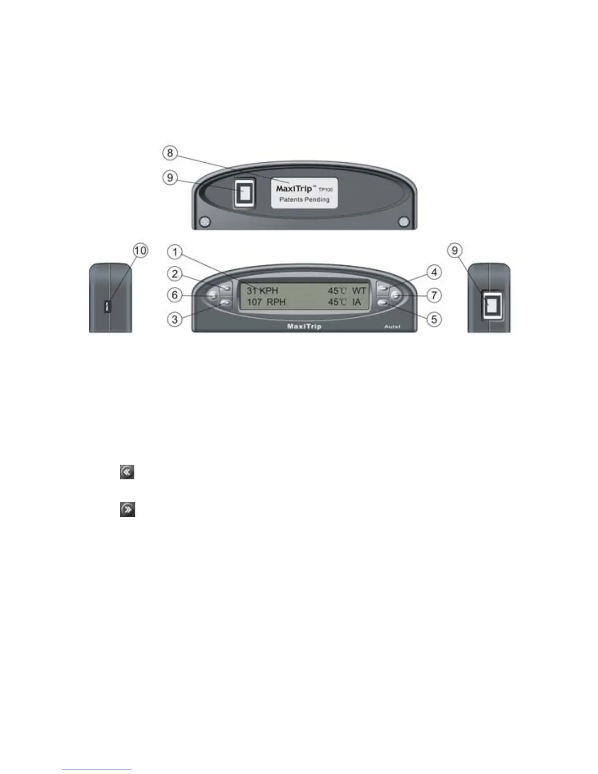Button -- Moves to next screen; it is also used to enter time