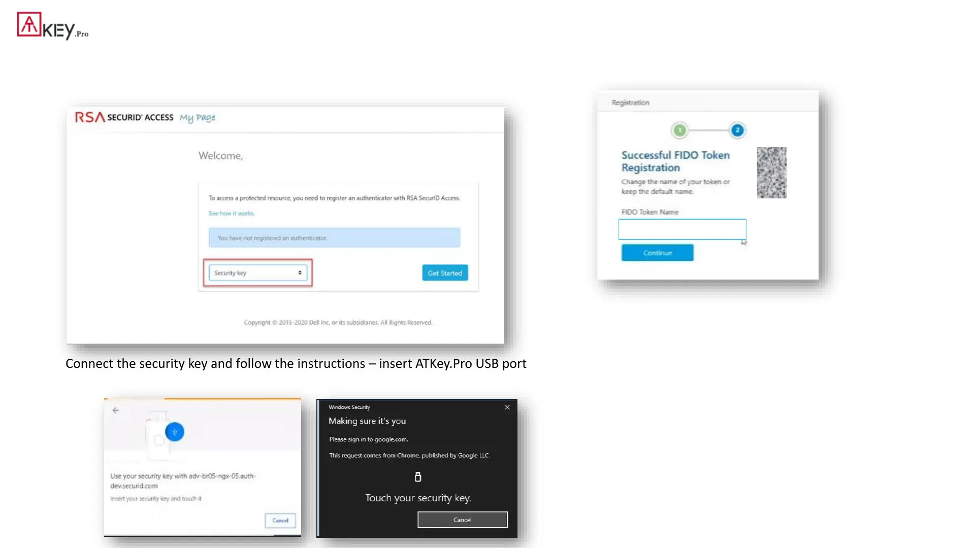 3. Connect the security key and follow the instructions – insert ATKey.Pro USB port and