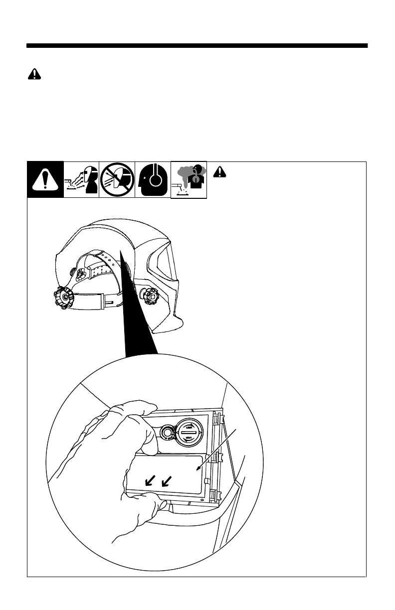installed. Welding spatter will damage the auto-darkening lens and void the warranty