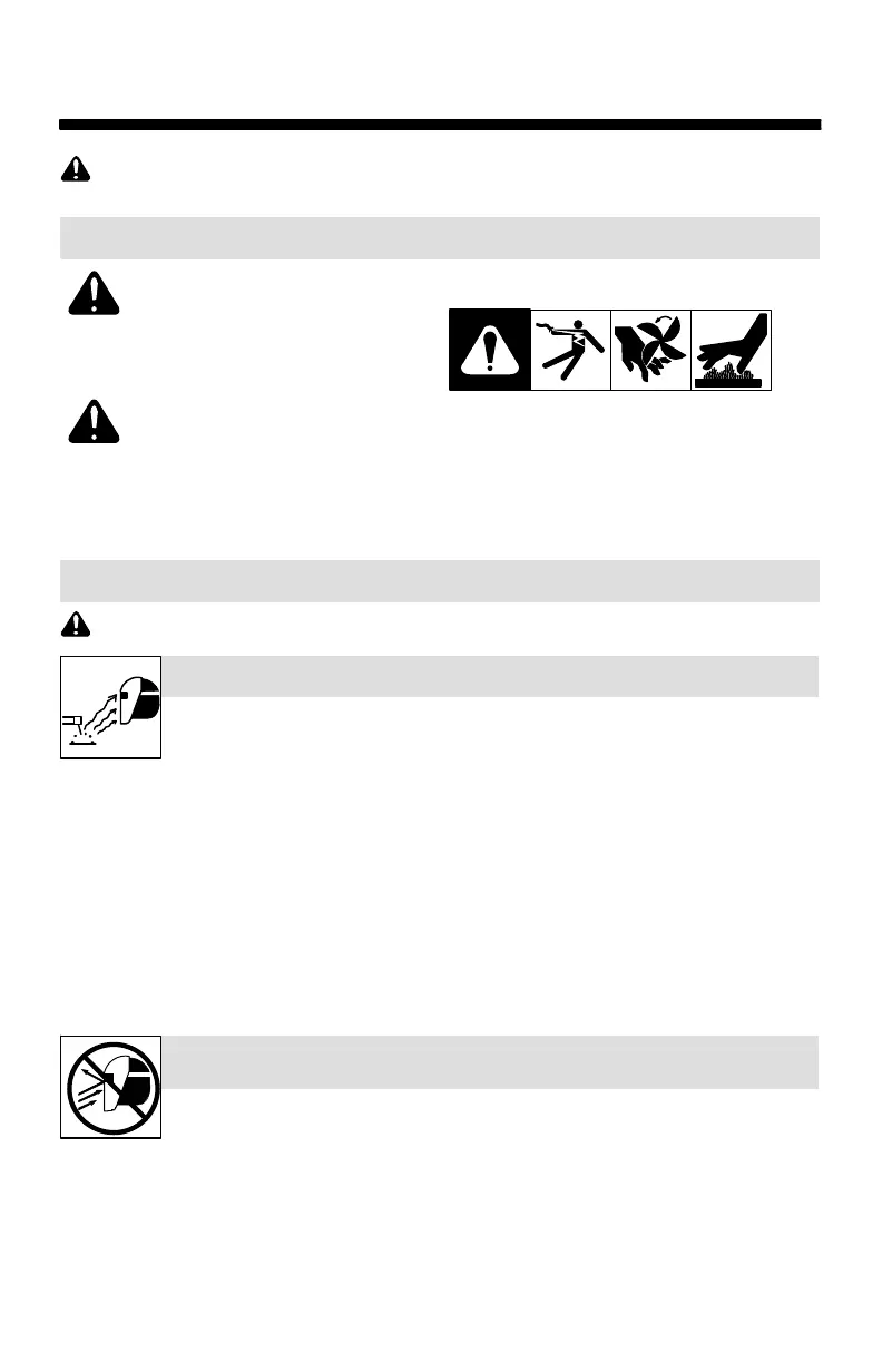 • Stop welding immediately if the auto-darkening lens does not darken when the arc is struck.