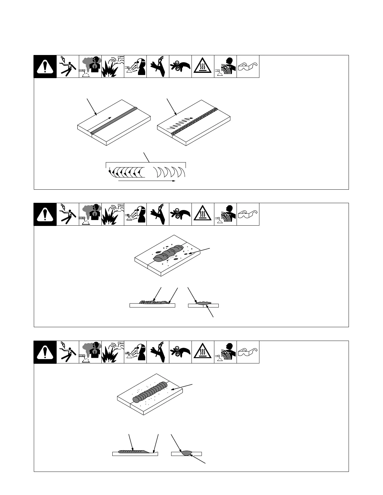 con ranuras anchas, o cuando se hacen puentes en el huelgo entre juntas, es mejor emplear un cordón con movimiento pendular o varios