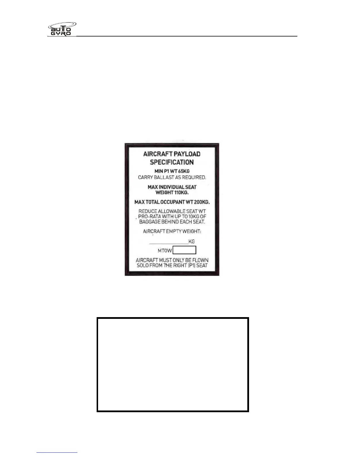 CG Range Limits (Gyroplane) – refer to Pilots