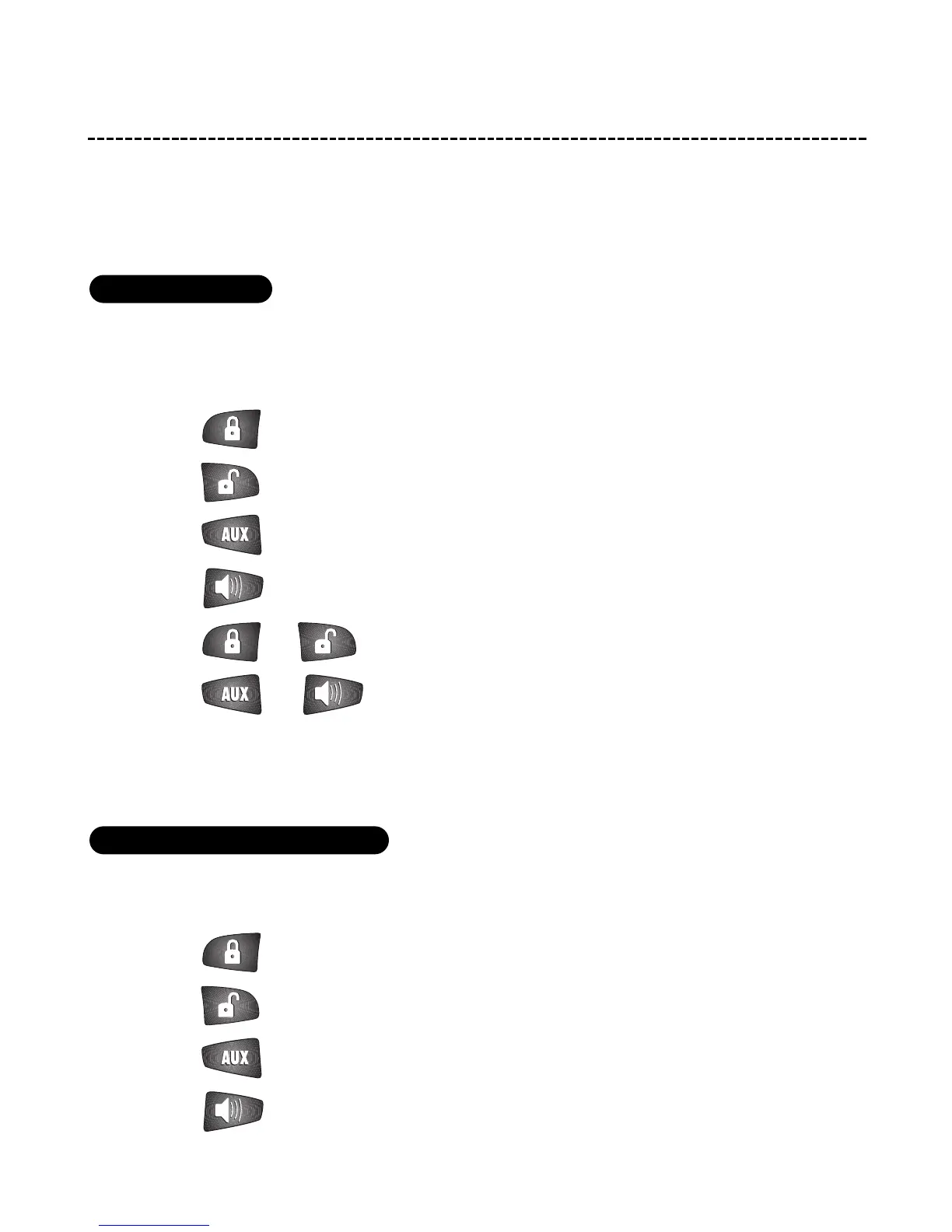 When programmed for single button arm/disarm configuration, the transmitter buttons are assigned to the fol-