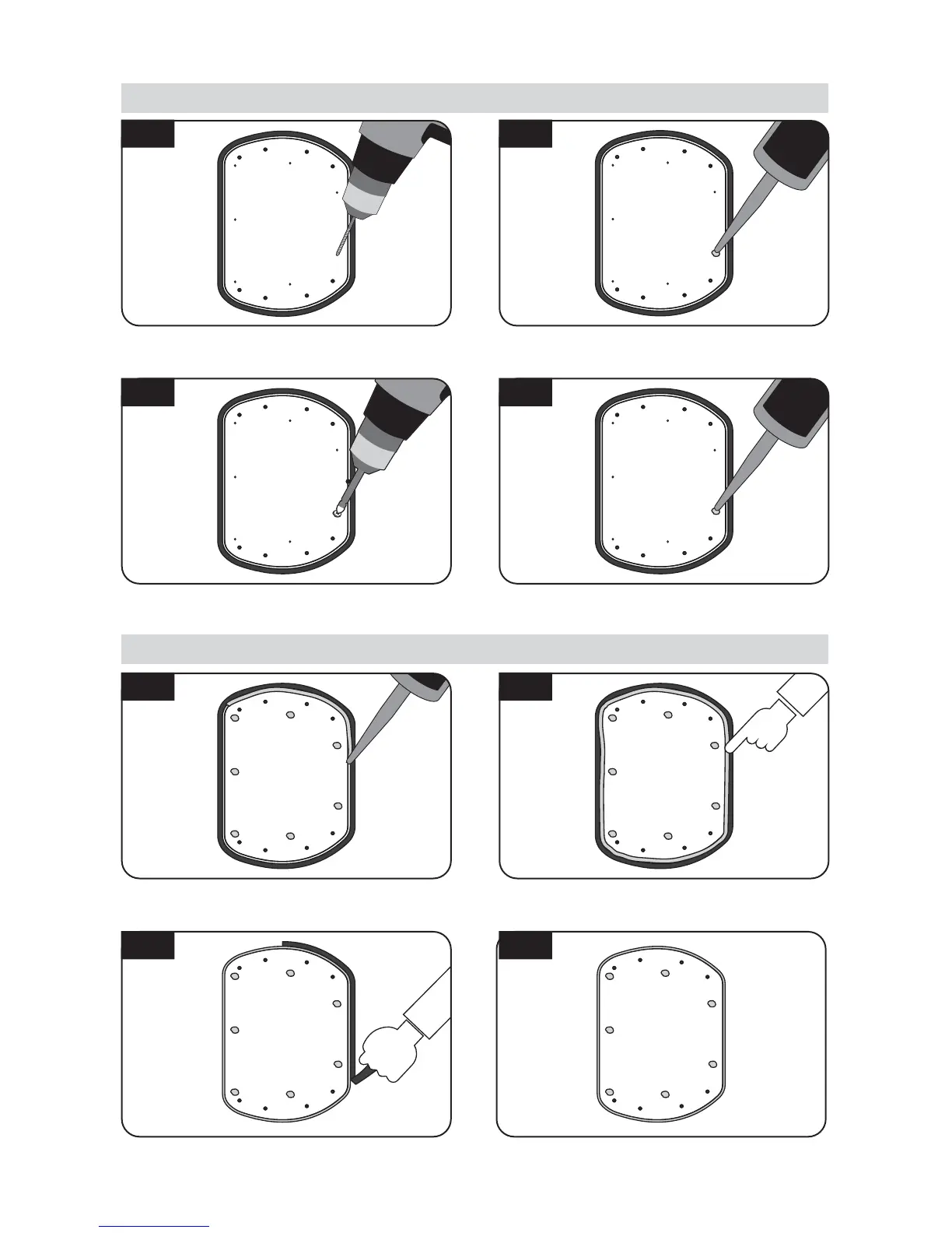 Assemblez sept (7) des boulons M4x20 Re-appliquer le silicone pour couvrir les