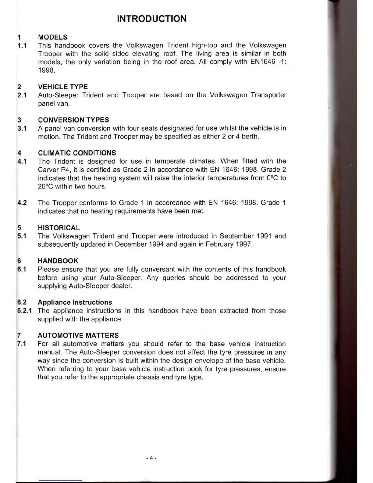 This handbook covers the Volkswagen Trident high-top and the Volkswagen