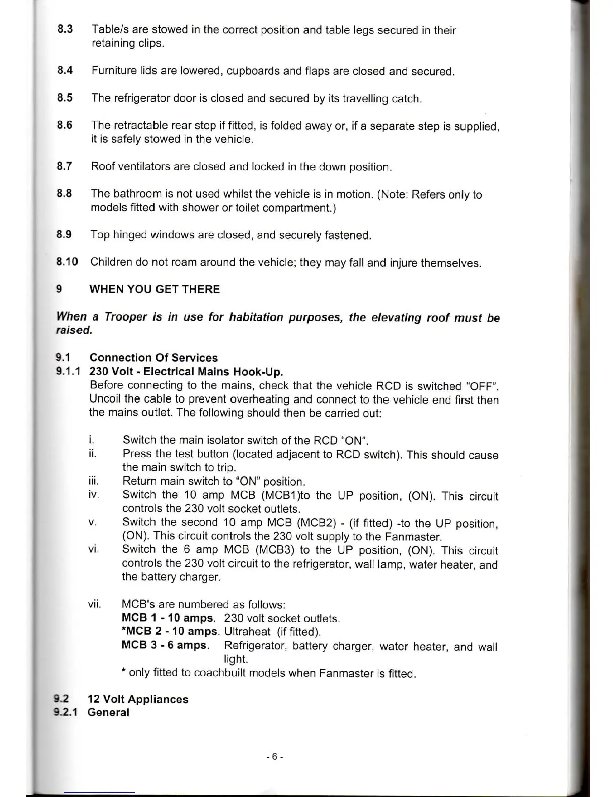 8.8 The bathroom is not used whilst the vehicle is in motion. (Note: Refers only to