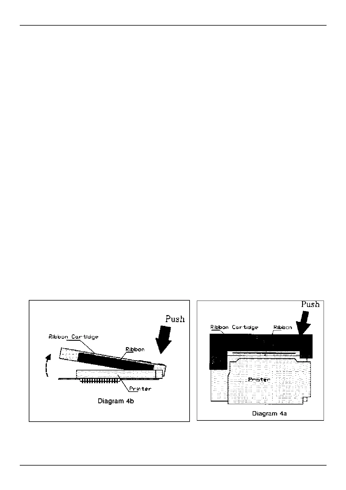 hand side of the ribbon cartridge in position first; with the ribbon fitting between