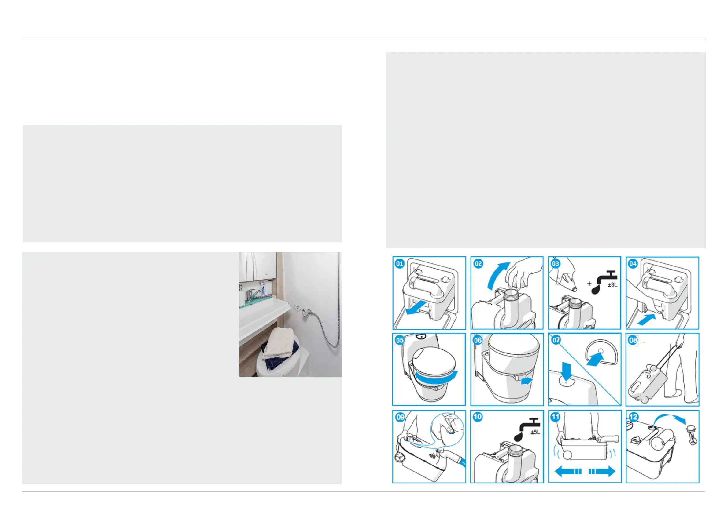 • Slide the waste-holding tank into the toilet and close the service door (04).