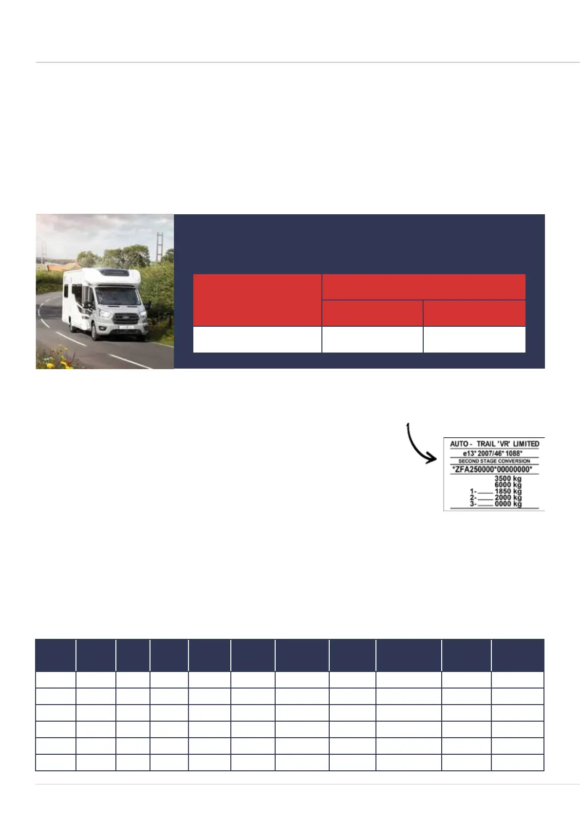 When calculating the weight, please ensure you factor in all items you intend to carry in the motorhome. This