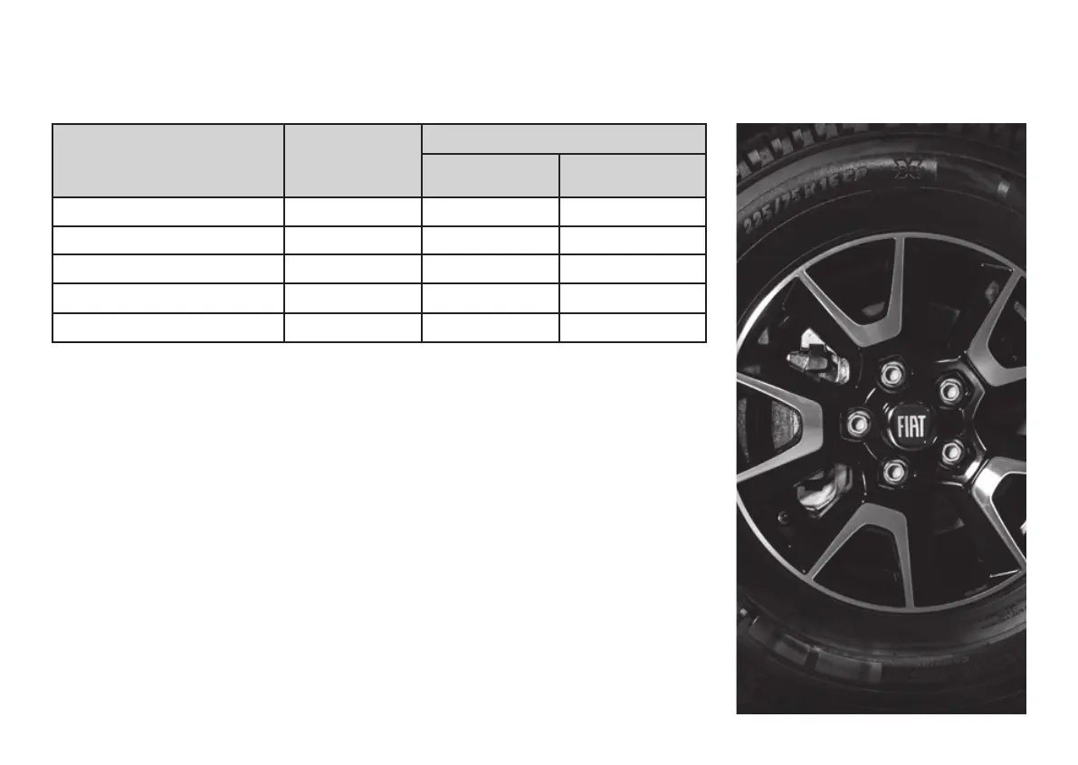 TYRE PRESSURES – COLD (BARS)