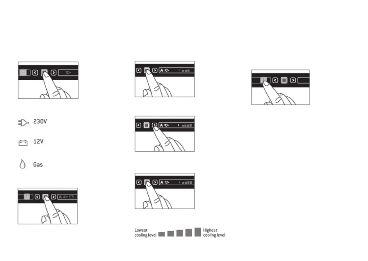 arrow buttons to choose the desired cooling level.