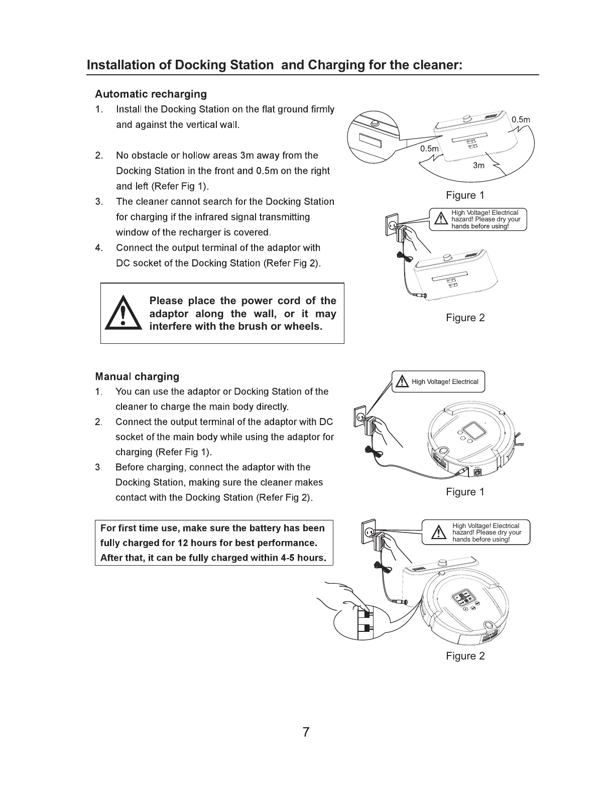 AUTO VACUUM A320 - Docking Station Installation and Charging; Automatic Recharging Setup; Manual Charging Procedure