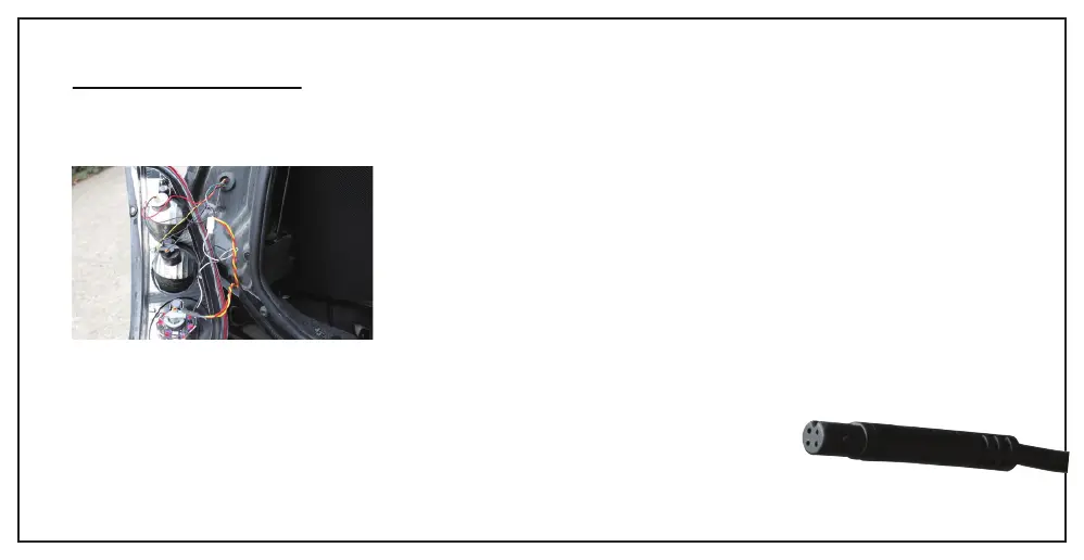 3. Carefully peel the skin of the red and black wires, and find the reverse light power wires, fix the red wire of the video cable with the positive reverse