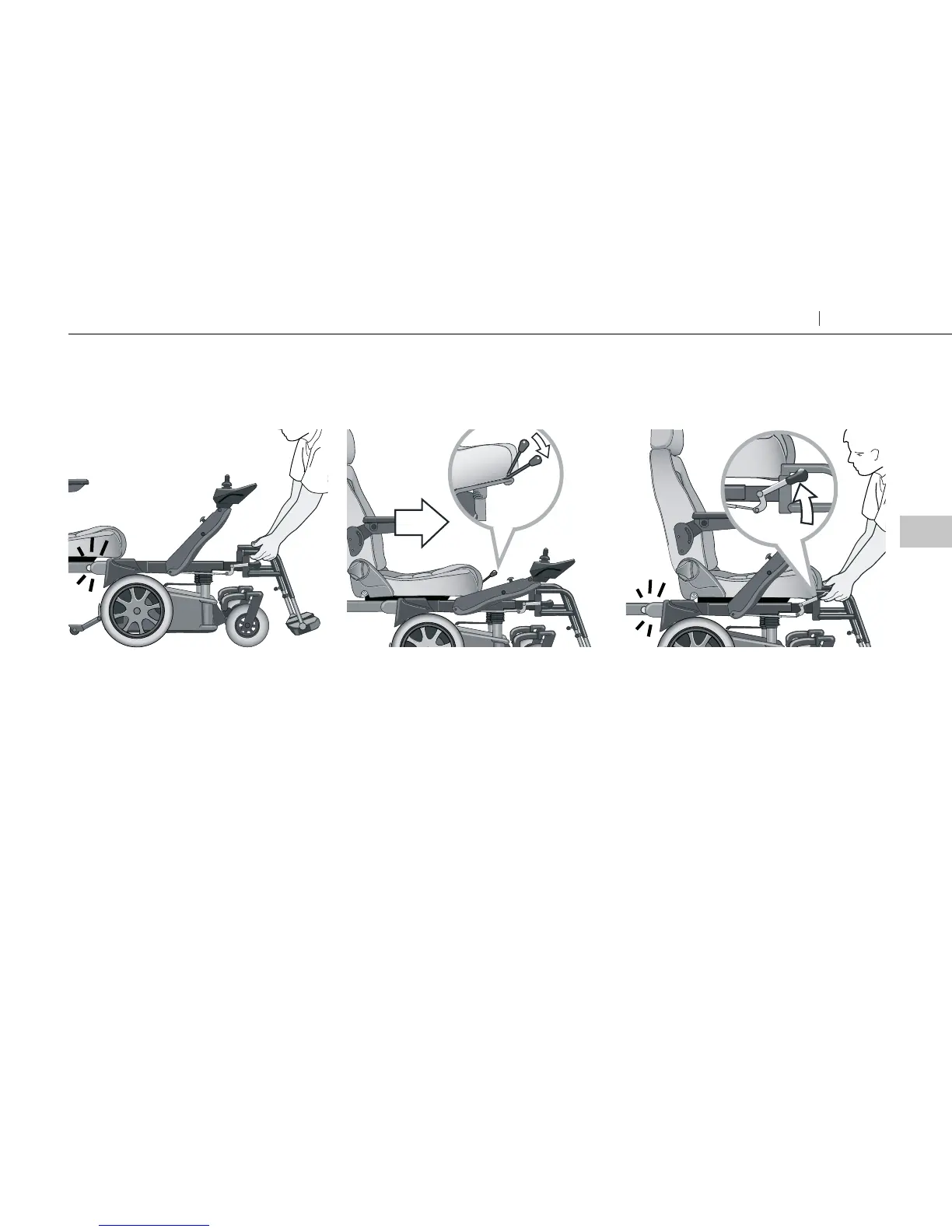 à l’avant du fauteuil. Transférez le siège