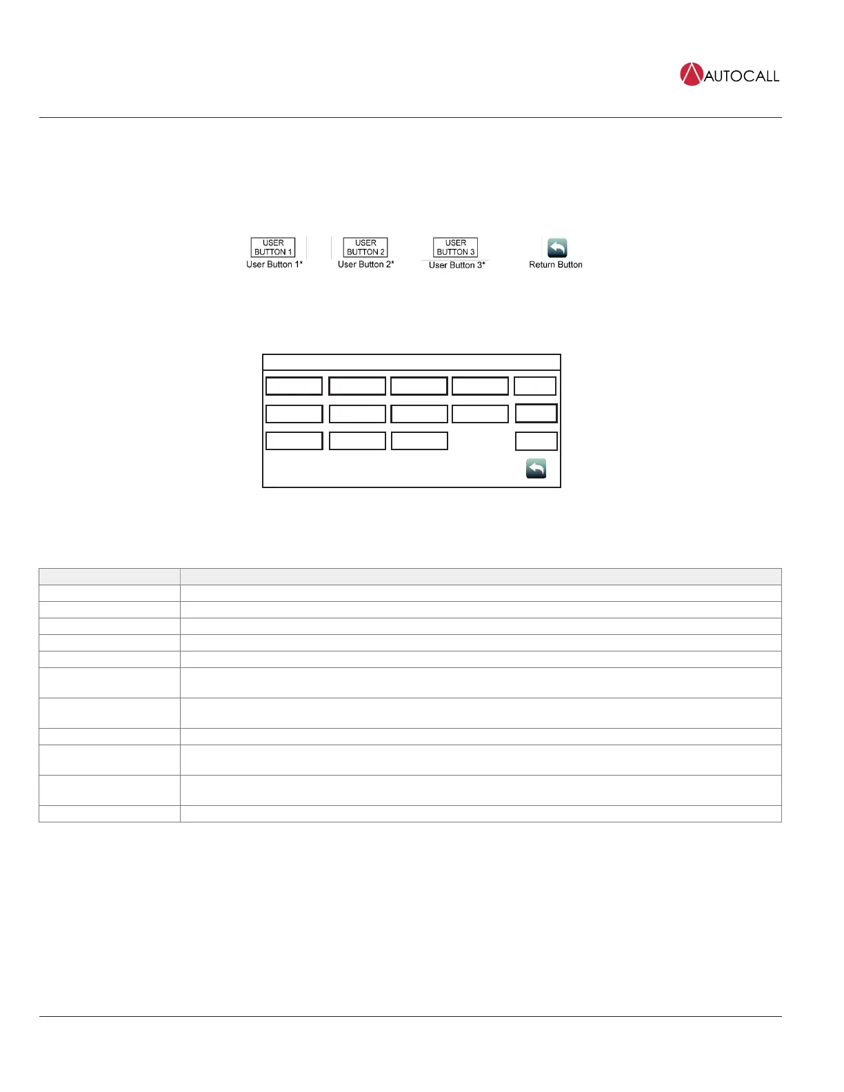 Note: * User Buttons can be assigned to custom panel functions. Each function can be assigned to a task, such as Manual evacuation or City