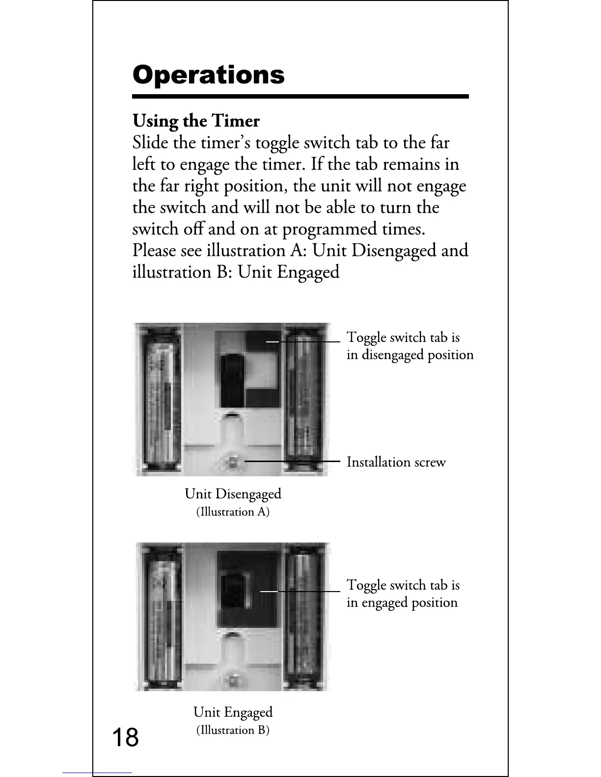 AutoChron Wall Switch Timer - Operations; Using the Timer (Engaging Mechanism)