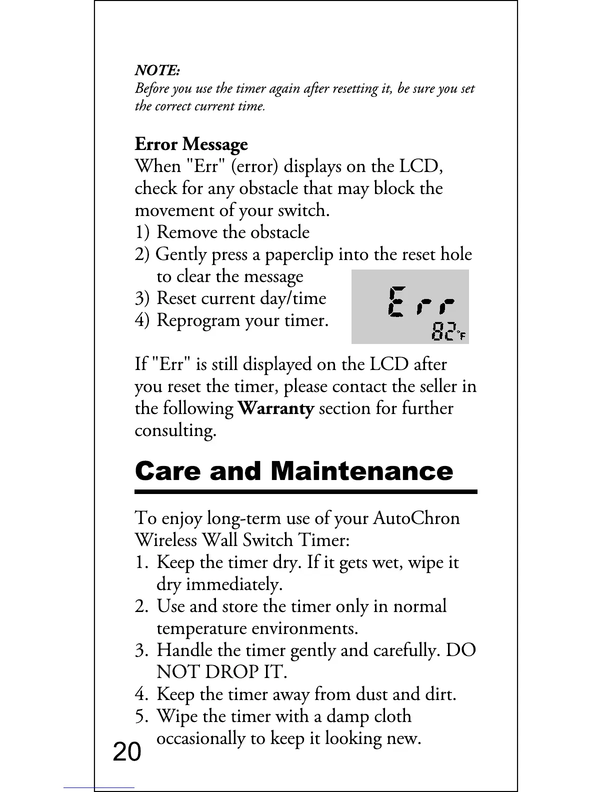 AutoChron Wall Switch Timer - Error Message Troubleshooting