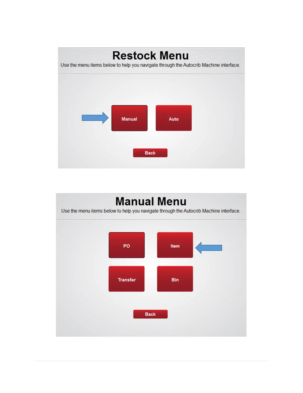 3. From the Restock Menu select the Manual button