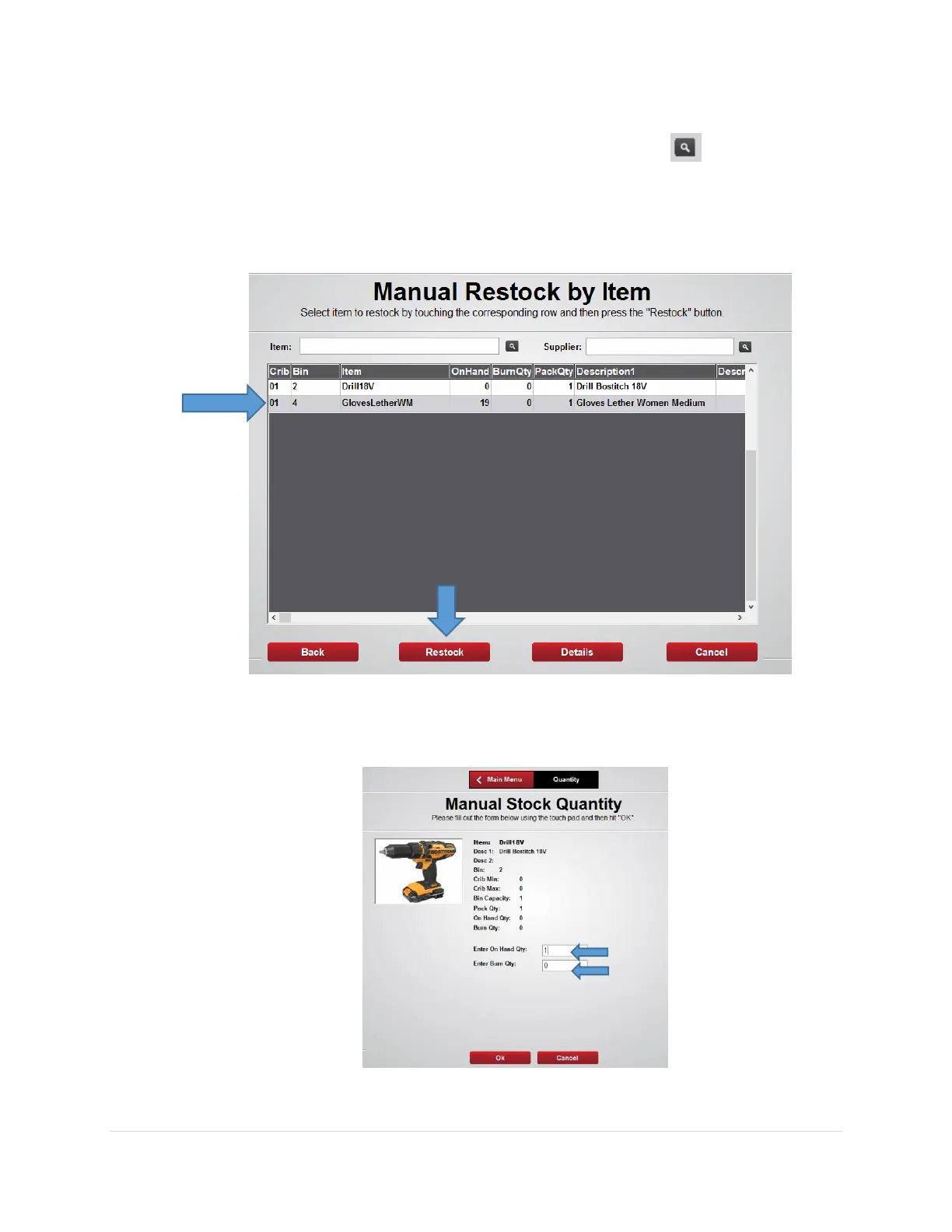 7. From the Manual Restock Quantity screen enter the On Hand or Burn Qty to