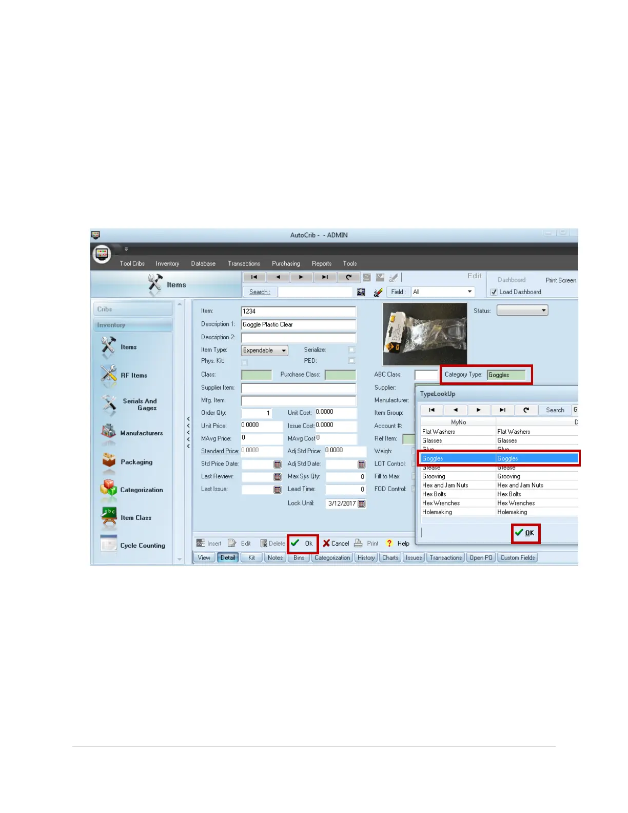 4. Click the Ok button located at the bottom of the Item screen to save your changes