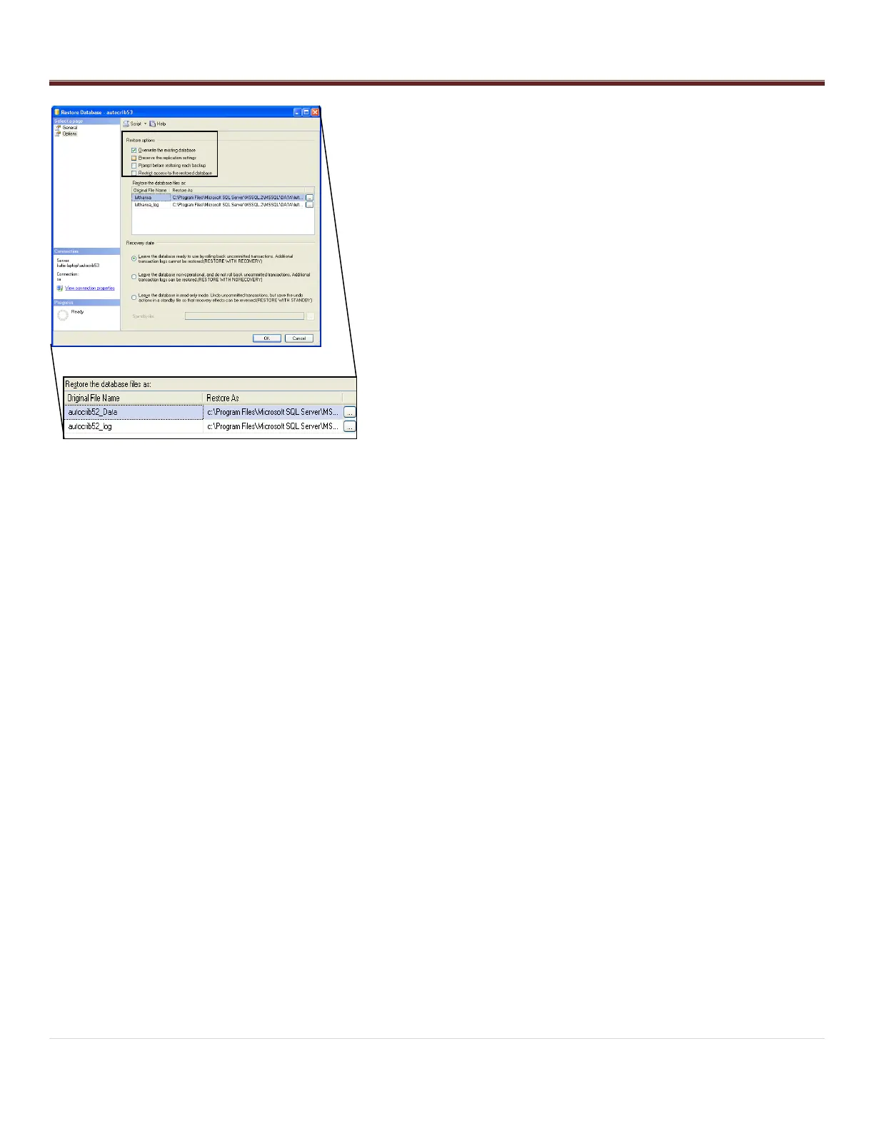 - Once the message “The restore of database „autocrib53‟