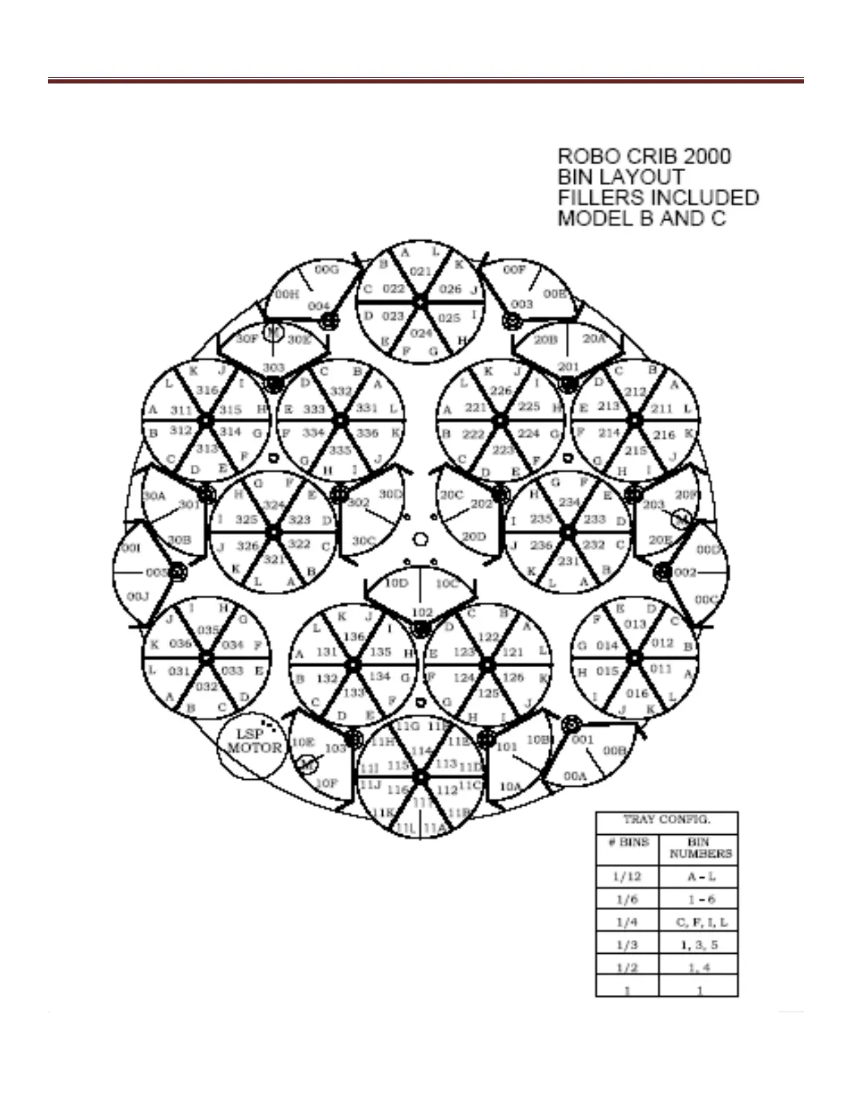 AutoCrib RoboCrib 2000 E - ROBO CRIB 2000 BIN LAYOUT; TRAY CONFIG.