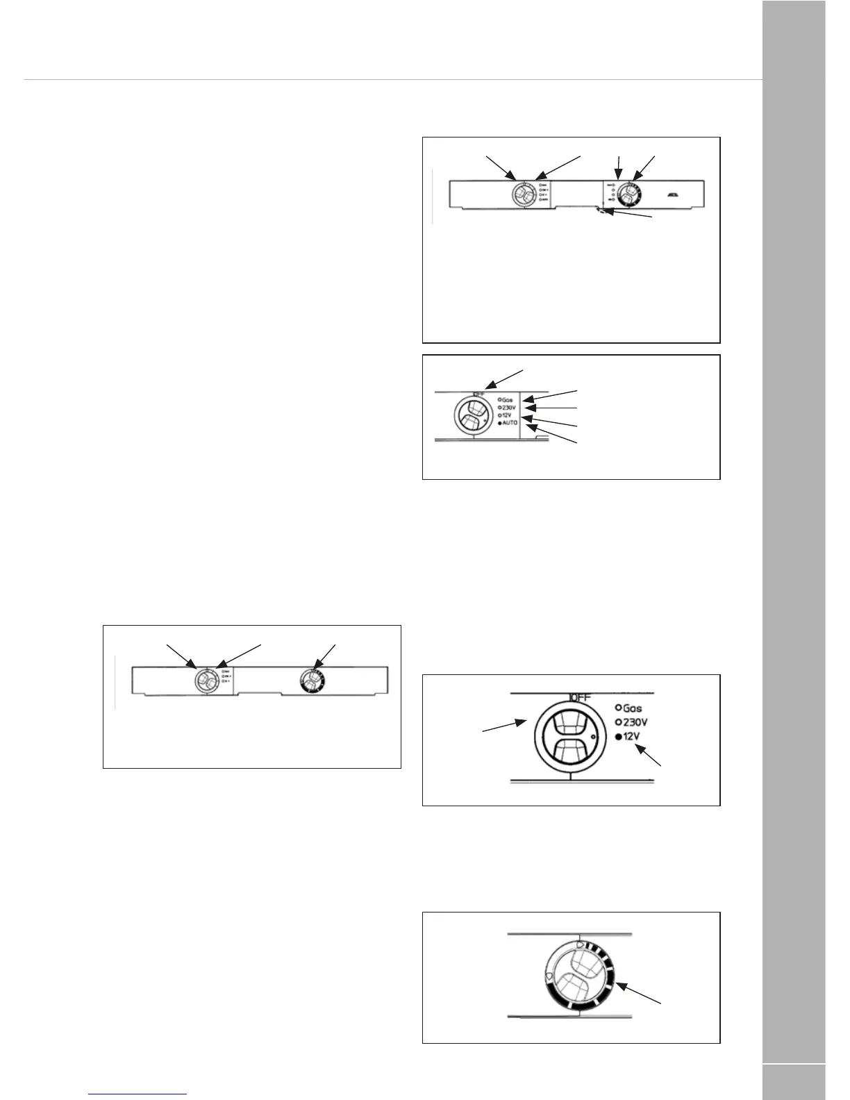 power, DC (12V), Gas (liquid gas), OFF.