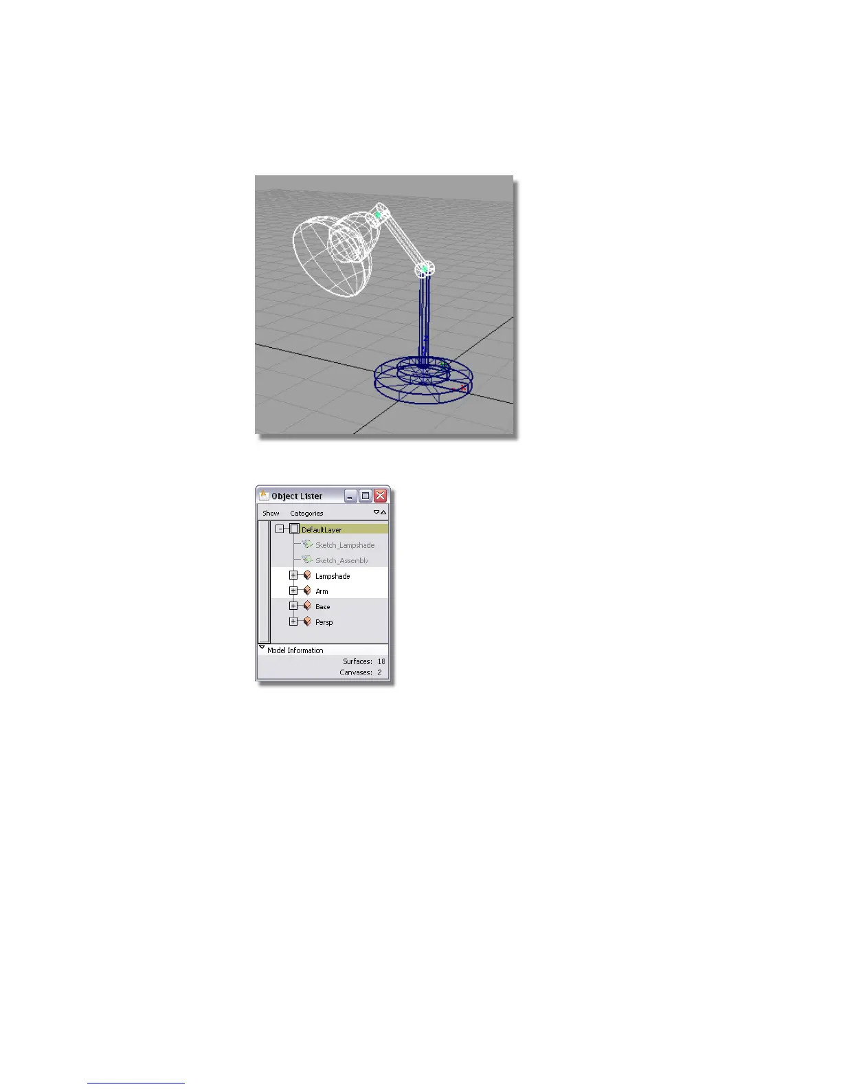The two groups are highlighted in the Object Lister.